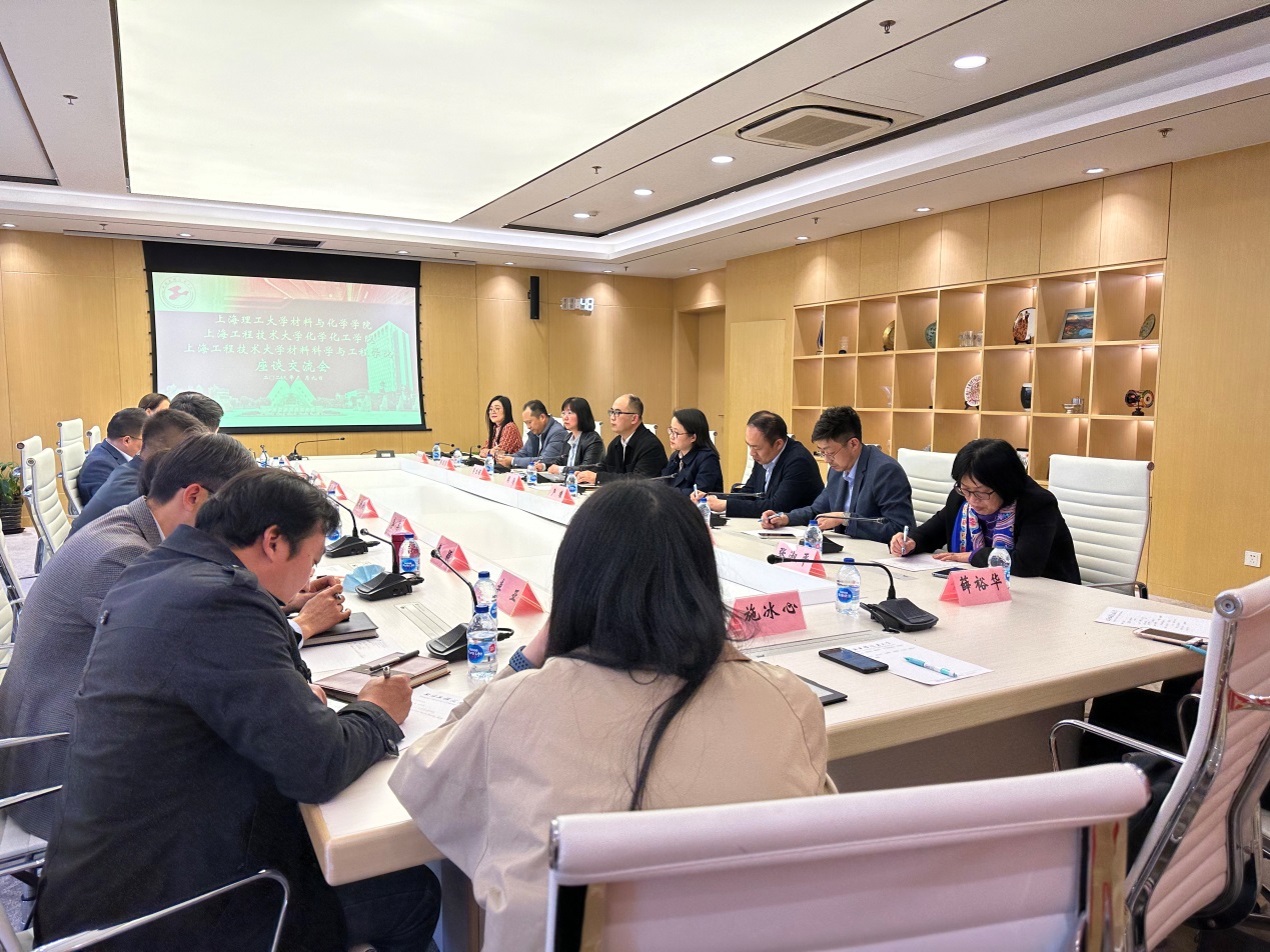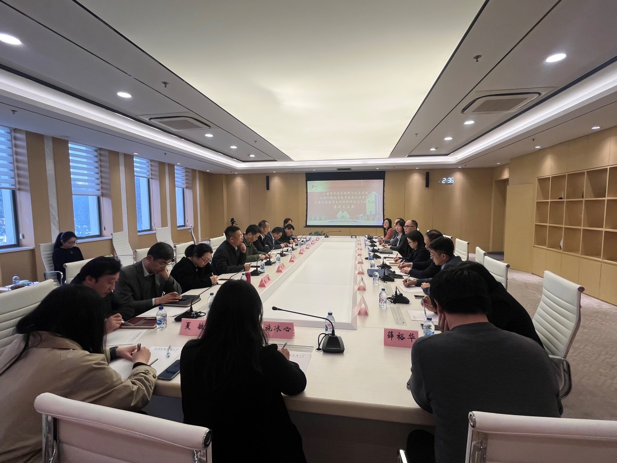 At the symposium, firstly, Li Jun, Dean of School of Materials Science and Engineering and Wang Jingo, Dean of School of Chemistry and Chemical Engineering introduced the development status of their respective colleges from the aspects of college construction history, discipline construction, scientific research platform, talent team, etc. Then, the School of Materials Science and Engineering and School of Chemistry introduced in detail the basic situation, characteristic advantages and scientific research team construction of the college, and expressed that there are still some problems in the construction of doctoral degree, team construction, discipline direction, assessment There are still some confusions and bottlenecks in terms of doctoral point construction, team building, discipline direction, assessment mechanism, etc. The School of Chemical Engineering and the School of Materials of our university exchanged and discussed their good practices and experiences with each other in depth, and at the same time, they expressed that they should actively learn from the successful experiences of the School of Materials and Chemical Engineering of Shanghai University of Science and Technology in scientific research team construction, discipline construction, talent introduction, etc. They hoped that both sides would strengthen and deepen multi-disciplinary, multi-level and multi-type cooperation in joint project declaration, scientific research platform construction, scientific research team cooperation, etc., so as to learn from each other and promote development. We hope that both sides will strengthen and deepen multi-disciplinary, multi-level and multi-type cooperation in joint project declaration, scientific research platform construction, scientific research team cooperation, etc. and promote the development of each other.