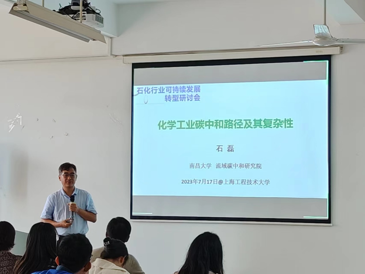 On July 17, at the invitation of Prof. Li Guanghui, Director of Environment and Resource Innovation Center, School of Chemistry and Chemical Engineering, Prof. Shi Lei, Dean of the School of Resources and Environment and Director of the Basin Carbon Neutral Research Institute of Nanchang University, and Prof. Zuo Jian, Professor of the School of Public Administration of Hunan University, visited our university together and carried out a seminar on the transformation of the petrochemical industry's sustainable development with the faculty members and students in the meeting room 4418 of the Training Building.