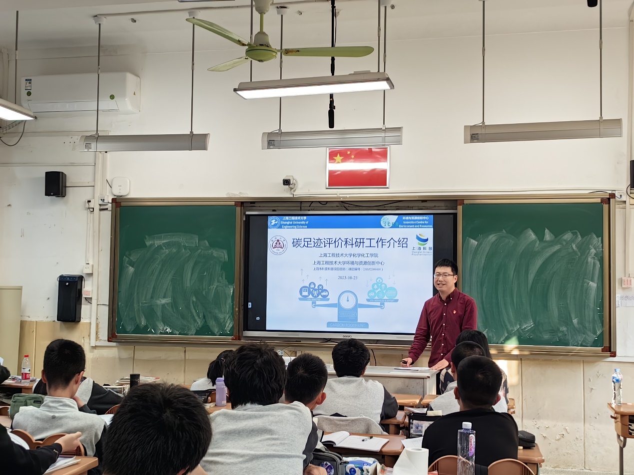 What is carbon in dual-carbon strategy? Why do we need to implement the dual-carbon strategy? What can we do to realize the goal of dual-carbon? Ms. Hu's questions stimulated the students' curiosity and desire to learn more. Ms. Hu helped students to further understand the dual-carbon strategy through the introduction and discussion of five examples of low-carbon cutting-edge technology applications, and she called on everyone to start practicing a green and low-carbon life. Mr. Gu Donggang introduced the carbon footprint evaluation and carbon emission reduction system integration research carried out by the Center for Environmental and Resource Innovation of the School of Chemistry and Chemical Engineering in recent years, which deepened students' understanding of carbon footprint and carbon emission reduction, and ignited students' enthusiasm to engage in carbon footprint-related scientific research. Ms. Han Mengqi introduced the carbon footprint research work she has been involved in with her latest academic paper.