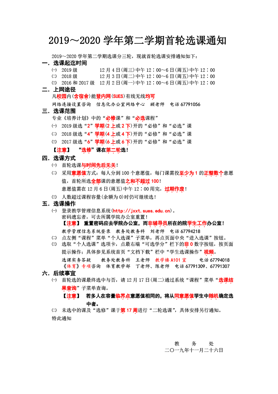 2019~2020学年第二学期首轮选课通知与各轮选课友情提示