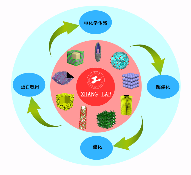 酶是一类生物催化剂,在生物体的新陈代谢、营养和能量转换等过程中具有重要的作用。此外,酶还广泛应用于生物工程、农业、食品工业以及环境保护等多个领域。然而,天然酶具有一些固有的缺点,如提取和纯化步骤复杂、成本较高、容易失活变性等。因此,人工模拟酶的研究得到人们广泛的关注。纳米模拟酶具有对热、酸和碱稳定,可规模化制备及价格较低的特点。但是,目前开发的纳米模拟酶催化活性普遍较低,如何提高纳米模拟酶的催化活性是目前纳米模拟酶领域的研究热点。张敏副教授与材料学院的鲁娜教授、化工学院的郑静副教授和王金杰高级实验师合作,在调控纳米材料的结构和其在酶催化应用领域进行了系统性的研究工作【Nanoscale, 2017, 9, 4508-4515(一区);ACS Applied Materials & Interfaces, 2019, 11 (2), 1790-1799(一区);Chinese Chemical Letters, https://doi.org/10.1016/j.cclet.2019.09.037(三区); Microchimica Acta, 2019, 186 (5), 271(二区);New Journal of Chemistry, 2019, 43, 15946-15955(三区)】。上述研究工作受到国家自然科学基金、上海市教委、上海市科委的支持。