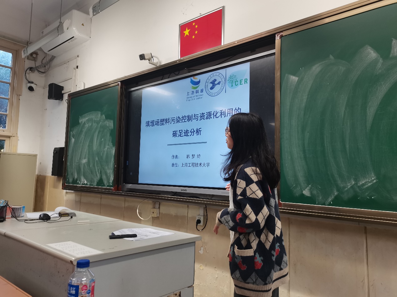 “双碳”战略里的“碳”是什么?为什么要实施“双碳”战略?我们能为“双碳”目标实现做些什么?胡婷莛老师的一个个问题,激发了同学们浓厚的好奇心和求知欲。胡老师通过五个低碳前沿技术应用实例介绍和讨论帮助学生进一步理解“双碳”战略,她呼吁大家从我做起,践行绿色低碳生活。顾敦罡老师介绍了化学化工学院环境与资源创新中心近年来开展的碳足迹评价与碳减排系统集成相关的研究,加深了学生们对碳足迹和碳减排的认识,点燃了学生投身碳足迹相关科创课题研究的热情。韩梦绮同学结合她最新发表的一篇学术论文,介绍了参与的碳足迹研究工作。