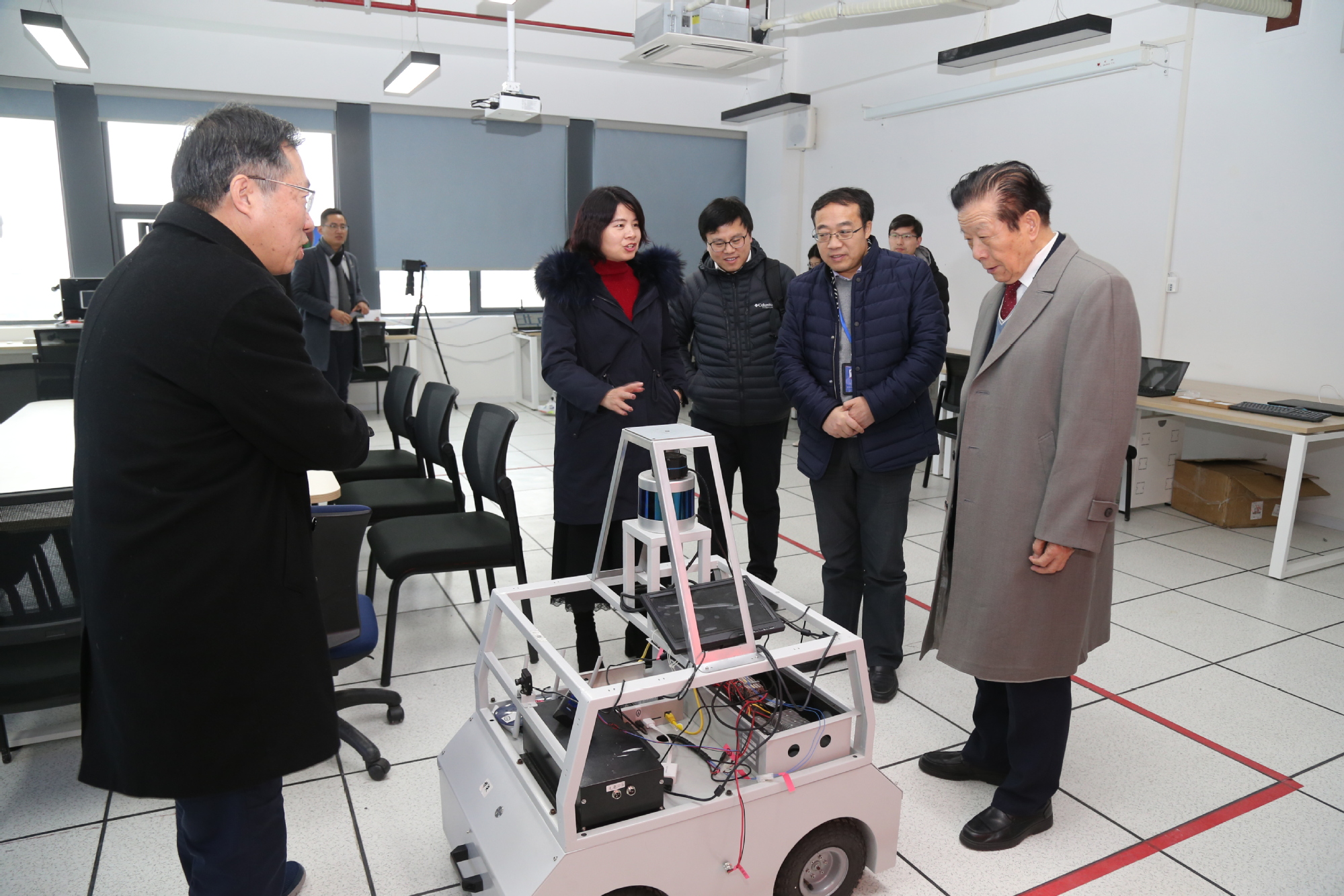 李江书记代表学校对陈院士的来访表示热烈欢迎,并介绍了我校的基本情况、办学特色、发展定位,以及近年来学校在创建现代化工程应用型特色大学进程中取得的成绩,感谢陈院士对学校教育事业的关心和支持,并热忱邀请陈院士常来工程大指导工作。会后,朱晓青副书记陪同陈院士参观了学校人工智能产业研究院、航空飞行模拟训练中心、化工学院中心实验室等相关特色实验室,陈院士对学校的快速发展及服务地方经济的特色给予高度评价,并就人才培养、科学研究及未来发展等方面提出了宝贵建议。