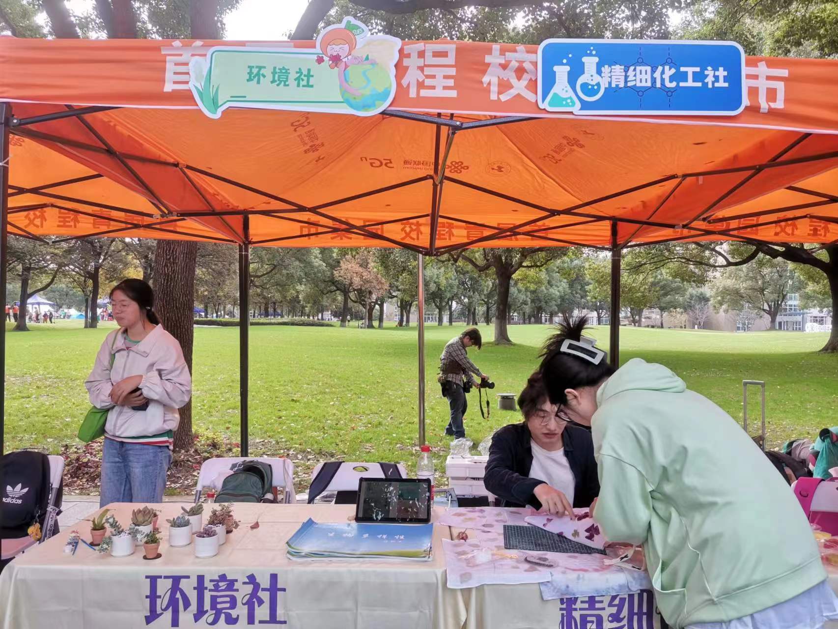 10月28日,校友们回到上海工程技术大学校园,在校园寻找蓝色棚联络签到点,一步步走过熟悉的校园,回忆自己在程园的美好时光。为了迎接校友返校,化院的环境社和精细化工社分别准备了绿植和手工皂等精美礼品,为校友们的返校之旅多增一份趣味,也向校友们展示了新化院人的风采与浓浓校友情。