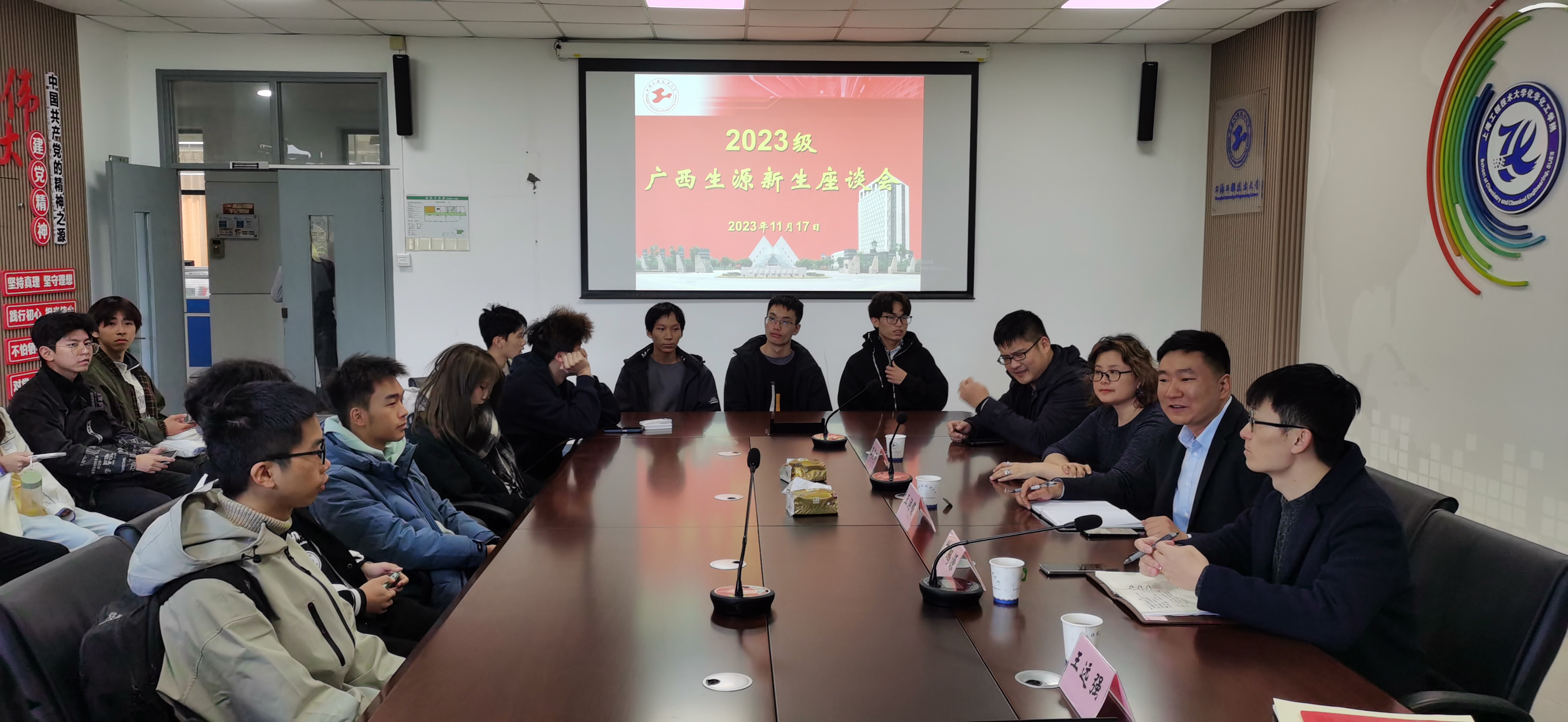 为深入了解学校招生宣传工作效果、加强今后广西的招生宣传工作成效,进一步提升招生宣传工作质量,11月17日,化学化工学院在实训楼4414召开了2023级广西生源新生座谈会。化学化工学院副院长王润锴、化学化工学院化学工程与工艺系系主任王远强、教务处(招生办公室)陈寅珕老师、广西籍教师代表纺织服装学院教师王燕珍、艺术设计学院党委组织员苏鹏源以及30余名新生参加了会议。