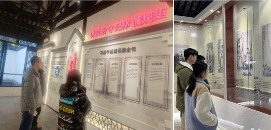 “一壁、一堂、一廊、一轩、一馆”构成了松江方塔园廉政教育基地。同学们在张燕黎老师带领下,参观了贪欲警示砖刻照壁、厉廉堂、廉政文化走廊、养德轩及反腐倡廉警示教育馆等。大家驻足观看,通过廉政人物、廉吏格言与廉政小故事,了解了古代清官廉吏的先进事迹和近现代革命建设时期的英烈、贤达和劳动模范的事迹,感受其以法养廉、以廉养德的理念。在欣赏历史文人的勤廉故事中体味做人、处事的真谛;在反面案例警示教育中提醒自身要常思贪欲之害、常怀律己之心。研究生党员与本科生团员进行了心得体会讨论,帮助青年大学生树立正确的世界观、权力观、事业观,做有理想、有担当、能吃苦、肯奋斗的新时代好青年。