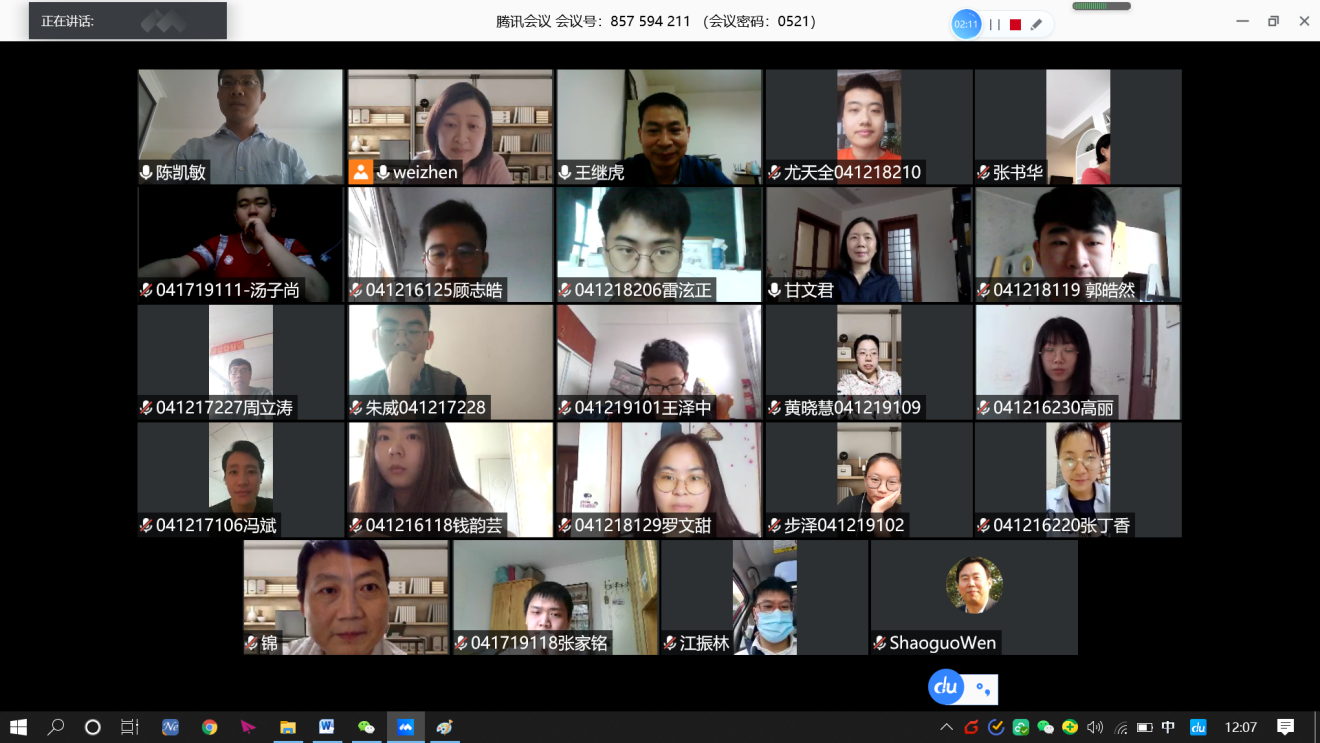 为了做好在线授课工作,积极推进就业,解决学生实际问题,2020年5月21日12:00,化学化工学院高分子材料与工程系师生通过腾讯会议平台召开了一次特殊的座谈会。对于线上教学的情况与学生进行交流。会议由高分子材料与工程系副主任李唯真老师主持,高分子材料与工程系专业教师代表和各年级在读学生代表参加了本次座谈会。