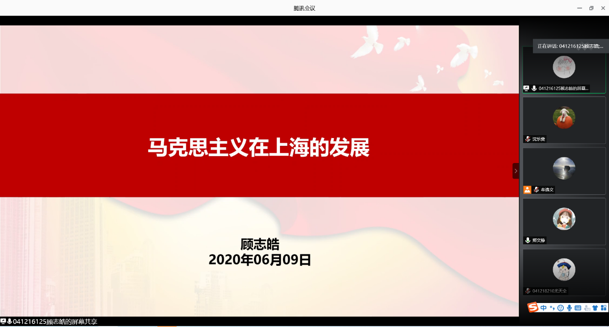 会上五位学生党员和两位入党积极分子从不同角度出发,与支部其他党员和入党积极分子分享“四史”红色故事。其中,党员顾志皓从自身在一大会址做讲解员的经历出发,用许多一大会址中的老照片给大家讲述了马克思主义在上海的传播与发展。党支部书记郑文静表示,“历史是最好的教科书,也是最好的清醒剂”,通过“四史”红色的故事分享的形式,能够有助于学生党员们对党史、新中国史、改革开放史、社会主义发展史的理解,有益于学生党员们从一个个鲜活的故事和榜样中更加坚定理想信念和党员的初心。