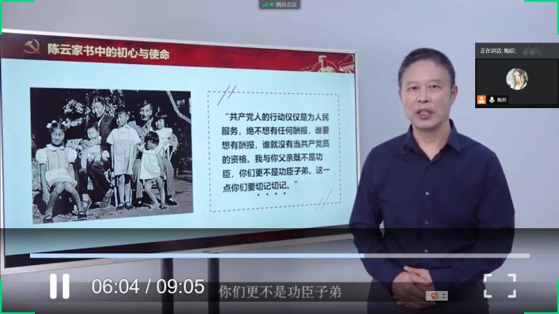 党委副书记、院长饶品华对主题党日进行了点评并谈了自己的学习感受,他认为陈云家书的内容折射出了老一辈革命家舍小家顾大家、为党和人民无私奉献一生的优良品质,也展现出了一名优秀共产党员的初心和使命,这有助于我们深入理解中国共产党为什么“能”这一问题。作为新时代的青年大学生,应继承他“国有难事念陈云”的担当精神和切实为人民谋利益的行事原则,担负起中华民族伟大复兴的历史重任。