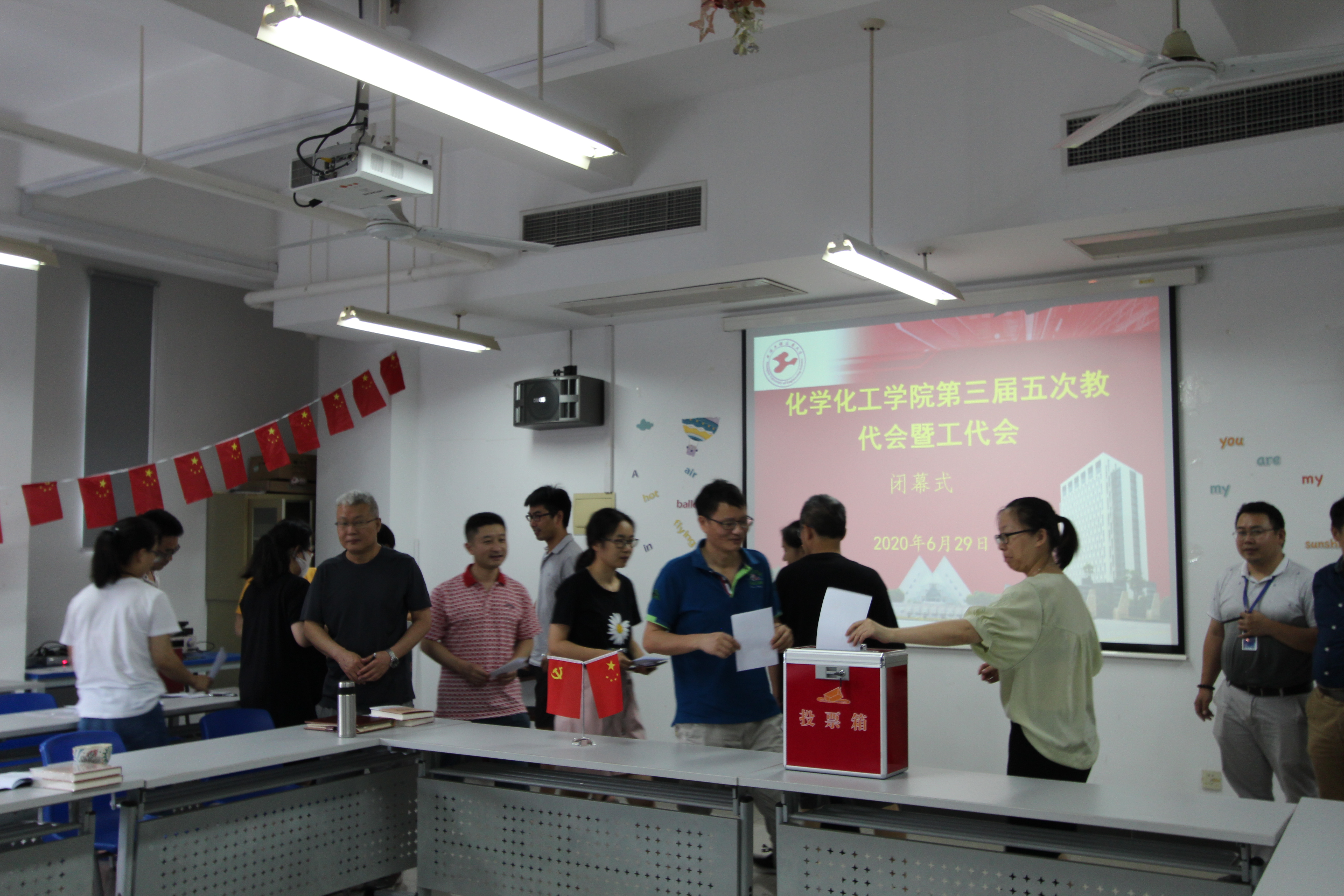 化学化工学院三届五次教代会暨工代会在庄严的国际歌声中落下帷幕。